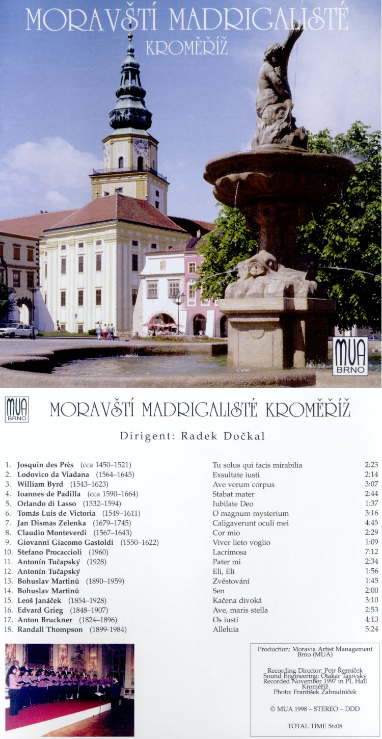 MORAVŠTÍ MADRIGALISTÉ Sbormistr: Radek Dočkal Profilové CD z roku 1998 |