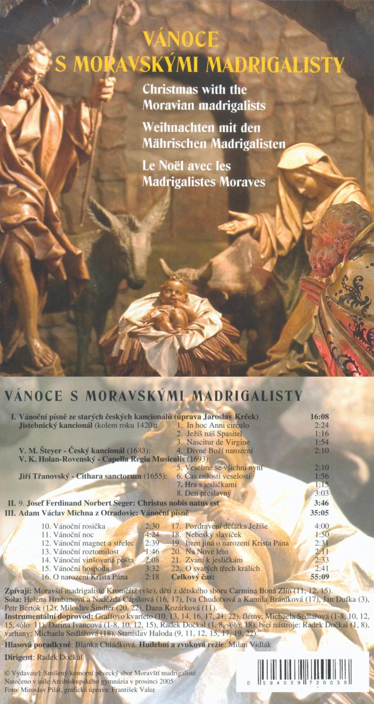 VÁNOCE S MORAVSKÝMI MADRIGALISTY MORAVŠTÍ MADRIGALISTÉ a CARMINA BONA Dirigent: Radek Dočkal (vydáno na CD v roce 2005) |